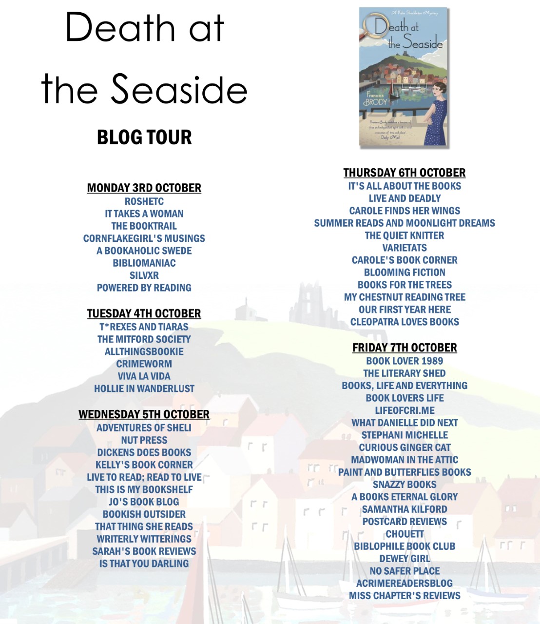 Upcoming Blog tour for Death at the Seaside by Frances Brody